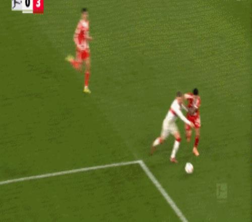比赛开打之后,两支球队就在场上拉开架势对攻,第3分钟杰克逊前场抢断后,带球杀入禁区,但太犹豫被回防球员将皮球破坏出了底线,逃过一劫的斯图加特,第9分钟还以颜色,昂达夫的射门打在了格雷罗的手臂上,不过主裁判没有任何表示,2分钟之后,奥利塞右路传中,莱默尔脚后跟破门得分,帮助拜仁取得了1-0的领先,上赛季至今奥利塞在联赛已经送出了22次助攻,同期五大联赛第一人。